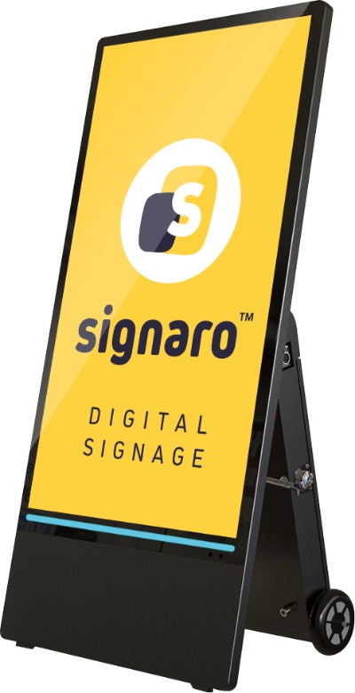 Entdecken Sie unsere aktuellen Highlights aus dem Bereich Digital Signage: robuste Displays, interaktive Stelen, mobile Kundenstopper und intelligente Türschilder – entwickelt für den professionellen Einsatz in Einzelhandel, Gastronomie, Bildung, Gesundheitswesen und Industrie. Alle Produkte lassen sich flexibel mit unserer Softwareplattform Signaro Studio kombinieren.