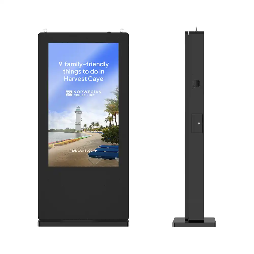 Im Einzelhandel kann die Stele vor Filialen, an Center-Zugängen oder auf Vorplätzen genutzt werden, um Aktionen, Öffnungszeiten, Hinweise zu Services (z. B. Abholung/Retourenpunkte) oder Markenbotschaften sichtbar zu platzieren. Durch 3.000 Nits bleibt die Lesbarkeit auch bei direkter Sonneneinstrahlung erhalten – ein entscheidender Faktor, wenn Außenflächen als verlässlicher Kommunikationskanal dienen sollen.